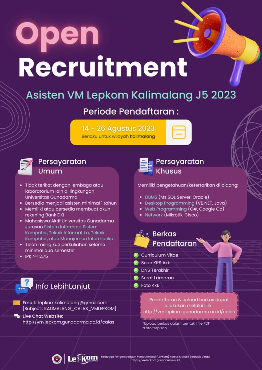[KALIMALANG J5] OPEN RECRUITMENT ASISTEN LEMBAGA PENGEMBANGAN KOMPUTERISASI (LEPKOM) KURSUS MANDIRI BERBASIS VIRTUAL 2023