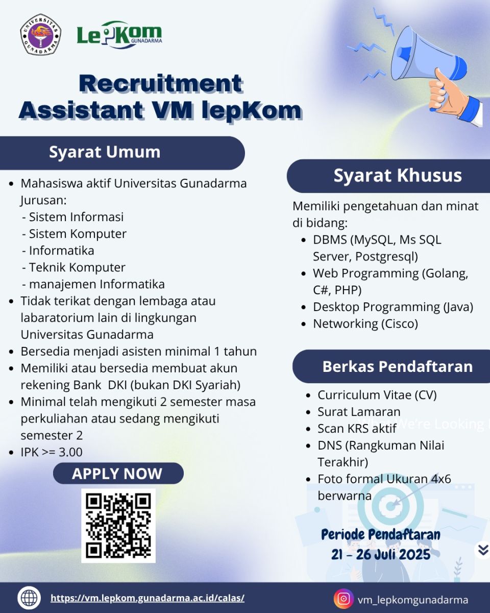 [ALL REGION] NOW OPEN: RECRUITMENT ASSISTANT VM LePKom 2025
